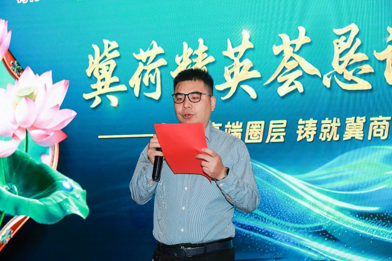 常州市河北商会监事长谷自战代表商会致辞,感谢荷花品牌对商会的支持。