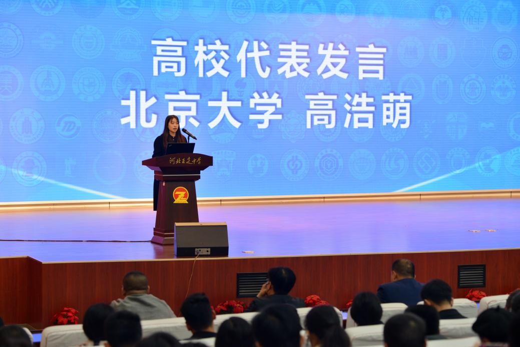 北京大学高浩萌教授作为高校代表发言时表示,正定中学历史悠久,从常山郡学、封龙书院传承至今,始终秉持“明德、笃学、强身、报国”的校训,彰显教育担当。她寄语学子重视知识积累、感知成长温度、勇于探索未来,并承诺高校将以开放姿态助力每位学生的个性化发展。