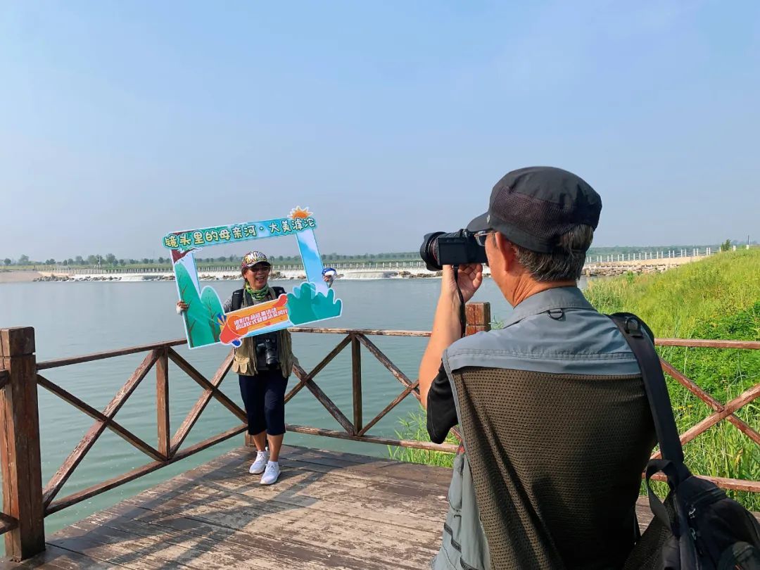 摄影爱好者与滹沱河合影