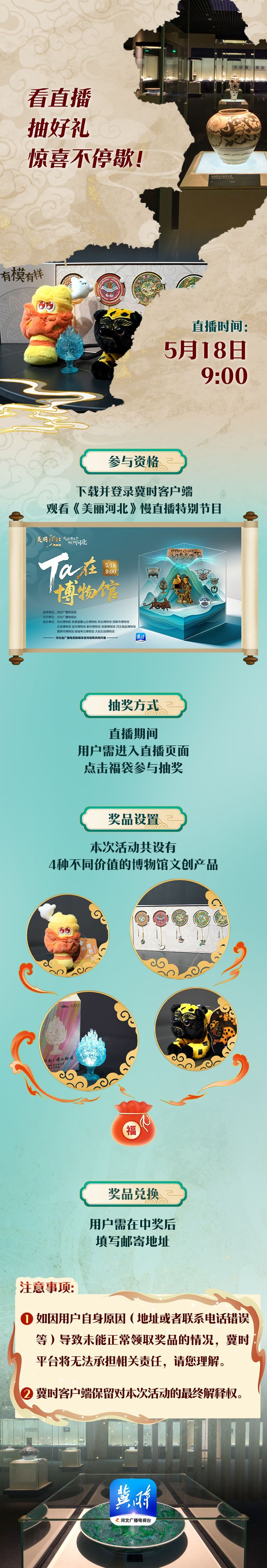 【看直播拿大奖】“5·18国际博物馆日”之际,《美丽河北慢直播》推出特别节目《Ta在博物馆》,一同云游河北宝藏博物馆,解锁千年文物的神秘故事。看直播抽福袋,文创好礼带回家。(请上下滑动查看图片)