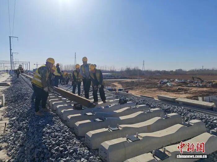 【雄商高铁年底全线铺轨完成】京港高铁雄安至商丘段山东境内正线铺轨日前顺利贯通,标志着铺轨施工正式由山东段转战河南商丘段,雄商段全面进入铺轨收官冲刺阶段,为今年年底全线铺轨贯通奠定基础。