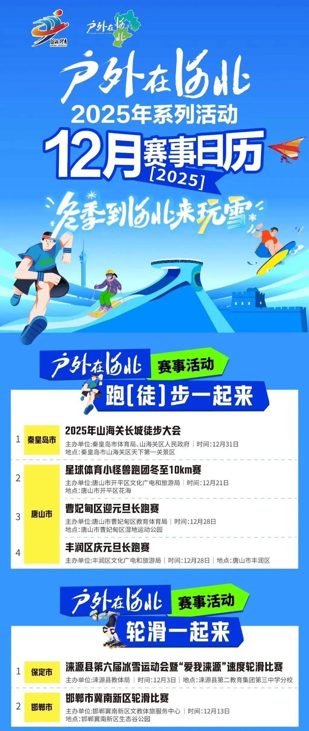 【冬季到河北来玩雪】“户外在河北”2025年系列活动12月赛事日历。