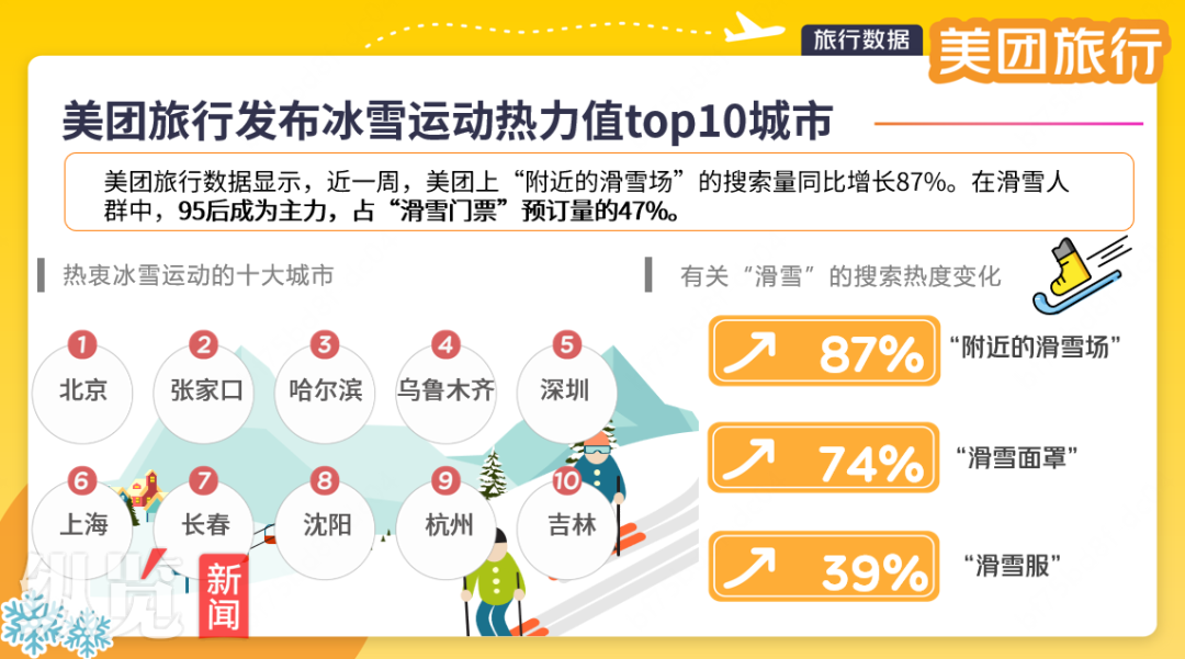 【张家口高居第二】美团旅行数据显示,近一周,美团上“附近的滑雪场”的搜索量同比增长87%,北京、张家口、哈尔滨等地市民对冰雪运动热情最高。崇礼万龙滑雪场和富龙滑雪场订单量比去年同期增长257%和210%。