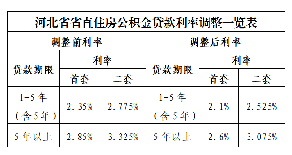 【下调】2026年1月1日起,河北省省直住房公积金贷款利率下调0.25个百分点。首套个人住房公积金贷款5年以上利率由2.85%下调至2.6%。