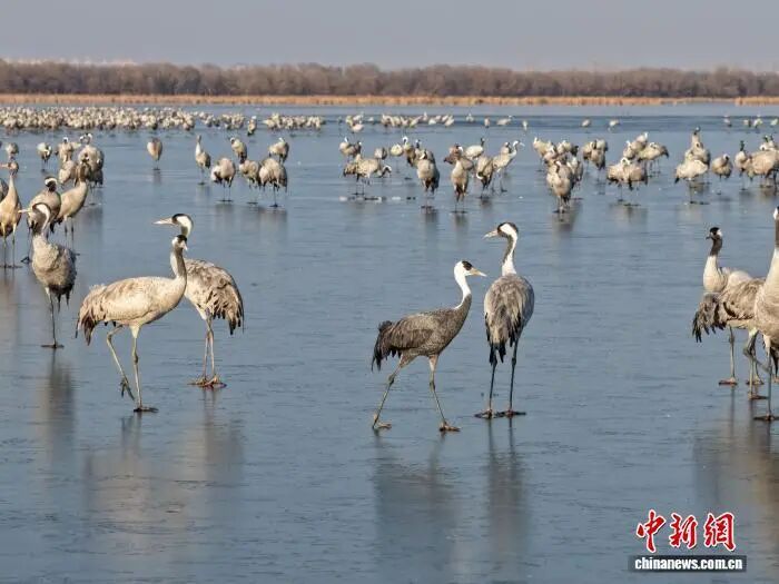 中新社2025年12月31日关注河北衡水:“京津冀最美湿地”衡水湖:冰封鹤舞迎新年。