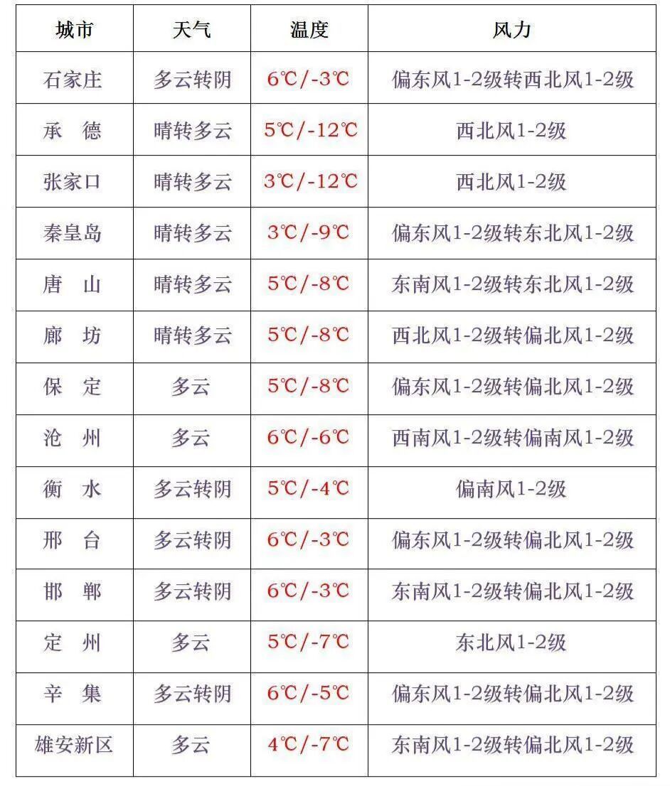 【沿海地区风力较大】今天(1月3日)白天,保定、廊坊以南地区晴转多云,其他地区晴间多云,沿海地区风力较大,请注意防范。石家庄多云转阴,-3~6°C;雄安新区多云,-7~4°C;北京晴,-4~6°C。