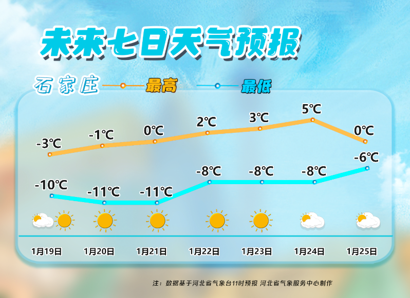 【全省气温继续下降】河北省气象台继续发布寒潮蓝色预警信号:受冷空气影响,今天早晨,张家口、承德、保定西北部、沧州东部最低气温继续下降4~8℃,累计可达寒潮标准,其他地区最低气温继续下降3~5℃。张家口、承德、秦皇岛北部、保定西北部最低气温降至-26~-18℃,其中坝上地区降至-35~-27℃,其他地区降至-17~-8℃。请注意防范。