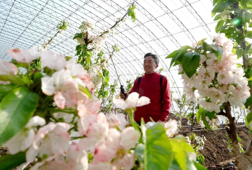 新华社1月31日关注河北秦皇岛:大棚樱桃花开果农忙。