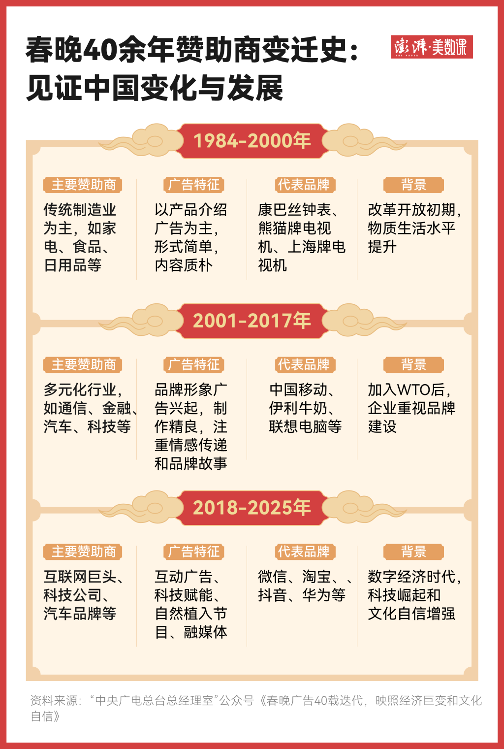 今年春晚赞助商中白酒品牌在减少,面向年轻人的新消费品牌开始增多,首次出现了潮玩、卡牌这些文化消费领域的合作伙伴。详情>> (请上下滑动查看图片)