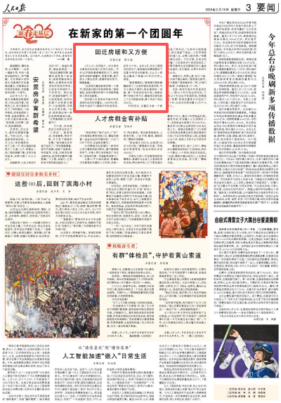 《人民日报》2月18日关注河北保定:新春走基层·在新家的第一个团圆年。