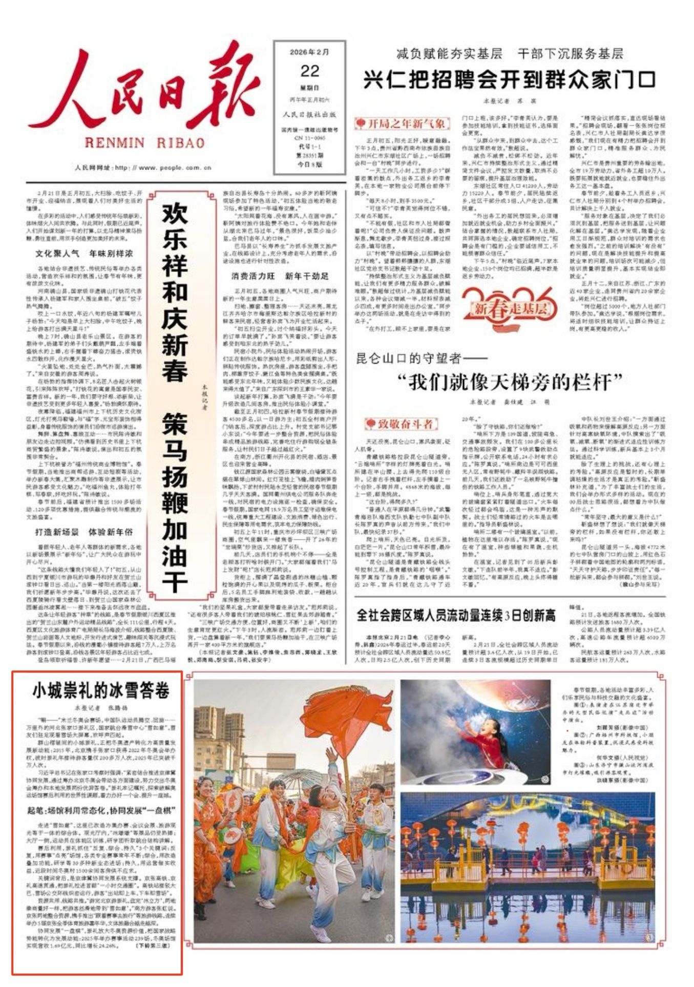 《人民日报》2月22日关注河北张家口崇礼区:小城崇礼的冰雪答卷。