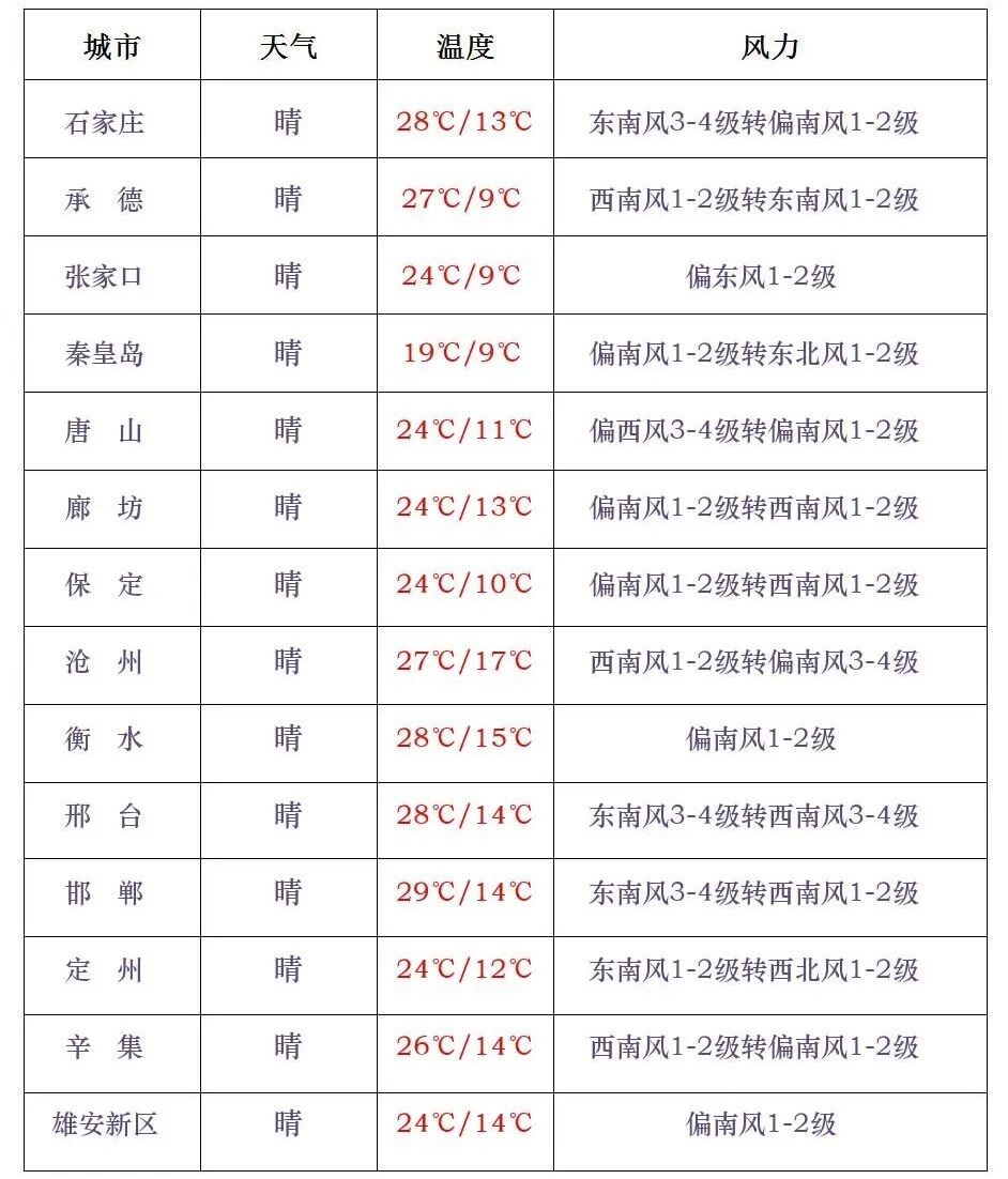 【石家庄提前“狂飙”30℃】未来几天,由于冷暖空气轮流上岗,北方气温将在升温和降温之间反复横跳。今天,一轮大范围升温席卷北方。明天,北方多地到长江沿线等地,气温会创今年来新高,银川、天津、西安、石家庄等地最高气温都会冲到30℃左右。1991-2020年,石家庄最早达到30℃是在4月22日。今天白天,全省晴间多云。