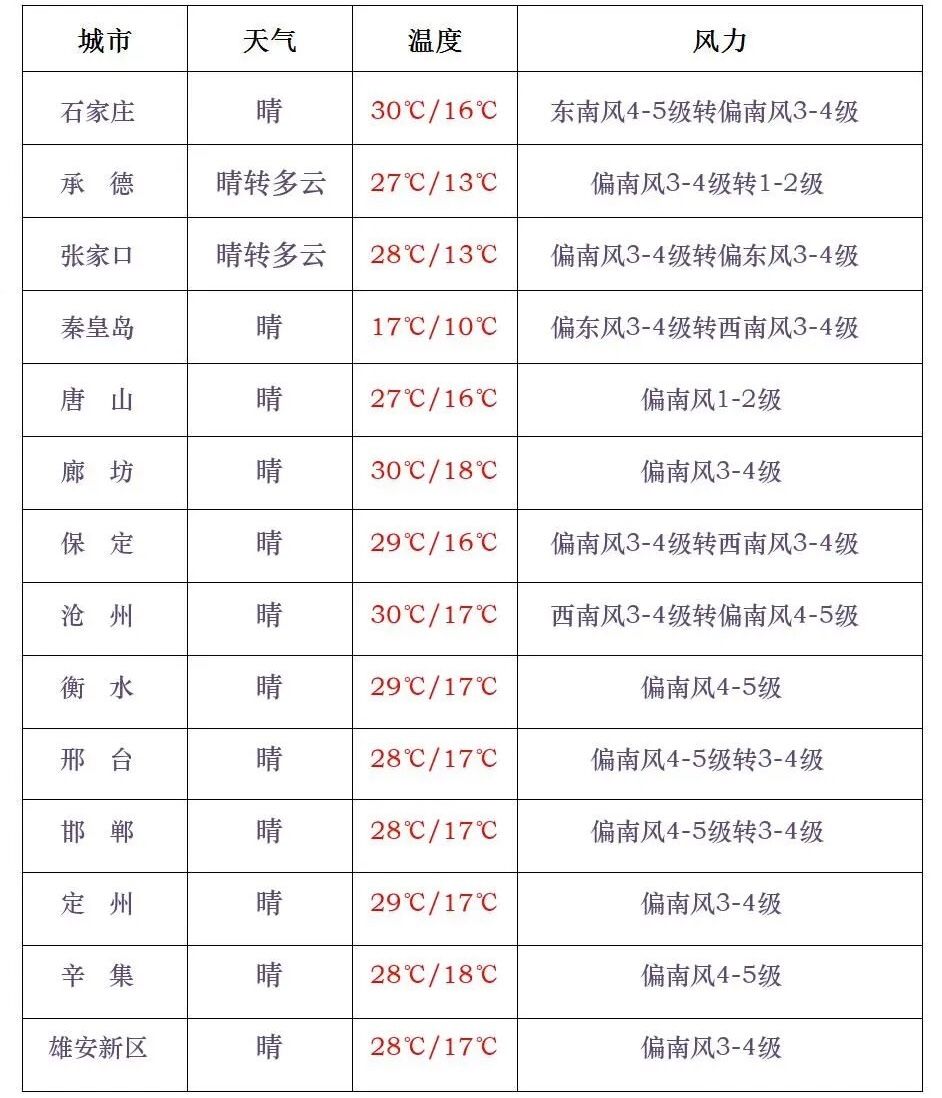 据省气象台预报:4月18日至20日,我省将先后出现强对流、大风沙尘和降温天气,影响范围广、风力较大、降温明显。18日后半夜至19日我省大部地区有雷阵雨,保定、廊坊以南地区个别地点有大雨,雷雨时局地伴有短时大风、短时强降水、冰雹等强对流天气;19日至20日,石家庄、沧州以北地区有西北风5到6级,阵风7到8级,局地可达9到11级,并伴有扬沙或浮尘天气;20日早晨,全省大部分地区最低气温明显下降,局地降幅可达10~14℃。