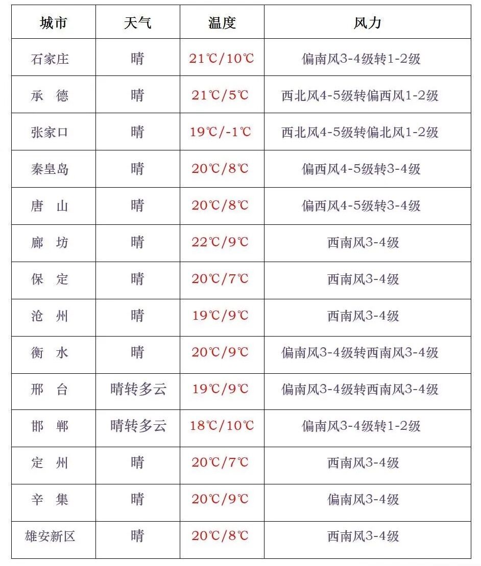 河北省气象台继续发布大风黄色预警信号:今天白天,全省晴间多云,张家口、承德、唐山北部、秦皇岛北部、保定西北部有偏北风5到6级,阵风7到8级,局地可达9到11级。请注意防范。