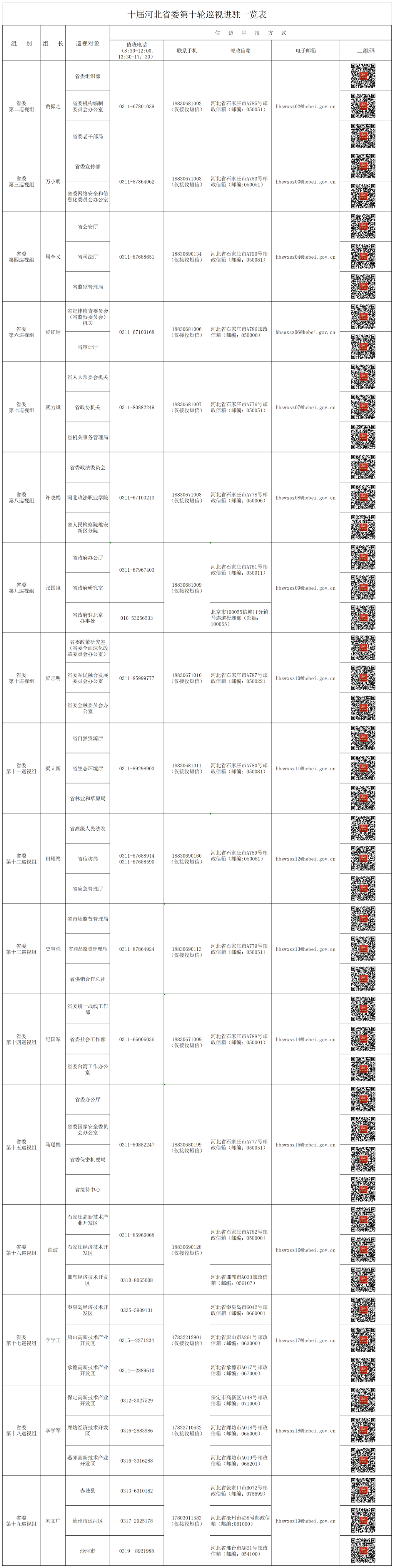 【一览表公布】十届河北省委第十轮巡视进驻一览表公布。(请上下滑动查看图片)