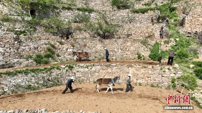 中新社4月24日关注河北涉县:太行梯田春耕忙。