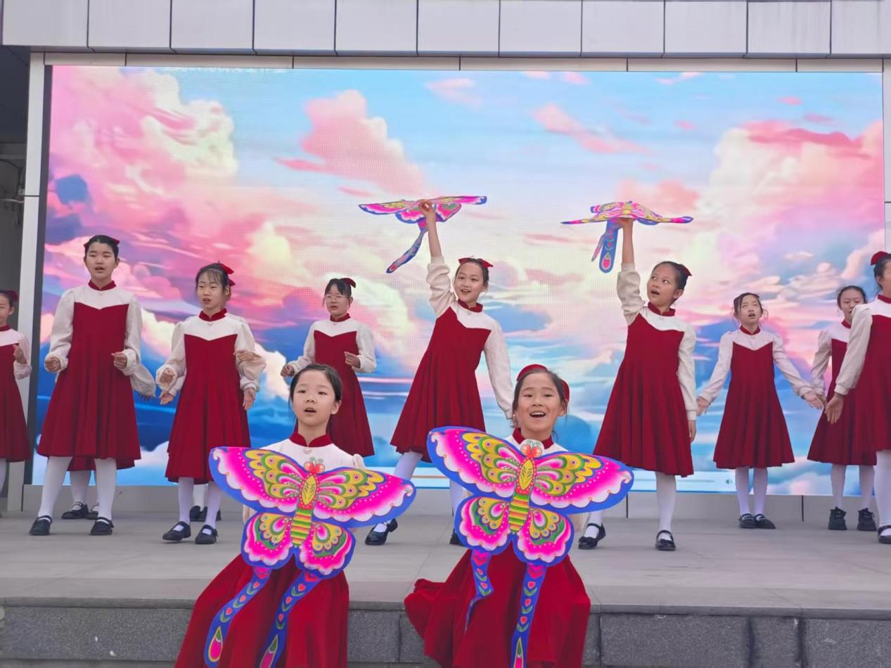 活动在合唱《蝴蝶飞呀》中拉开帷幕,清澈童声描绘春日画卷;四年级的诗歌朗诵《纸鸢舞春 书香伴飞》让文字与风筝云端共舞;王莉娟校长寄语:“愿每个孩子以书为帆、以鸢为翼,在知识的天空自由翱翔!”