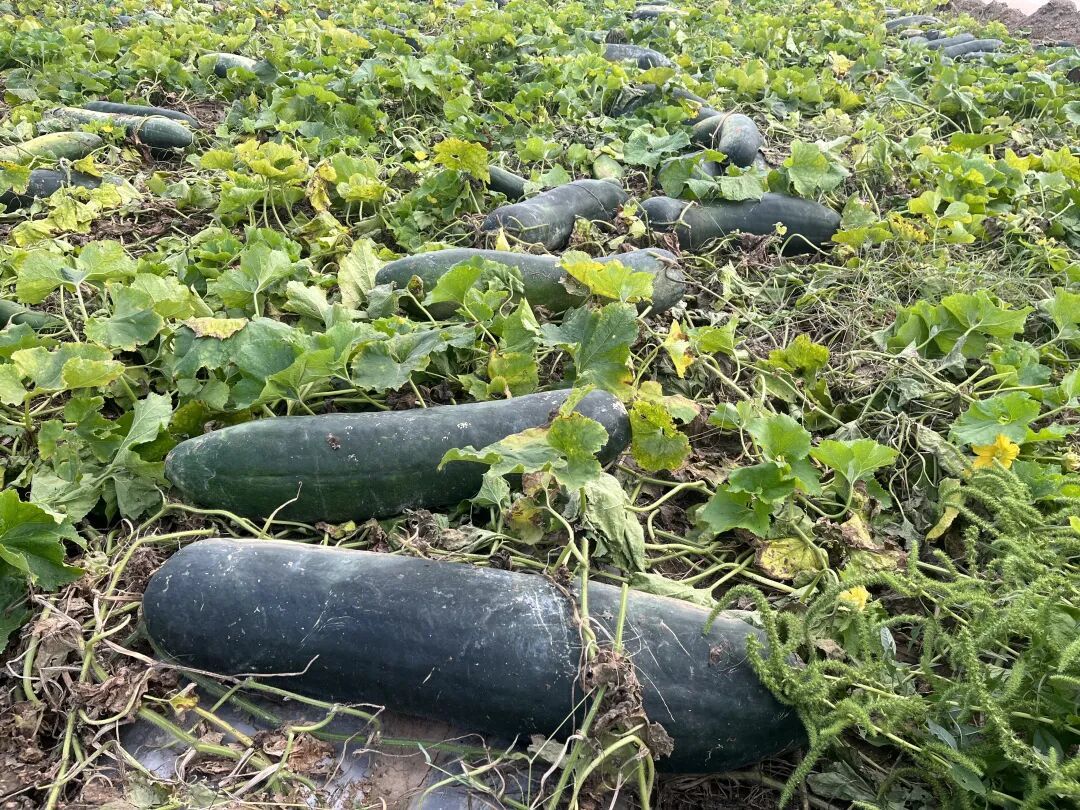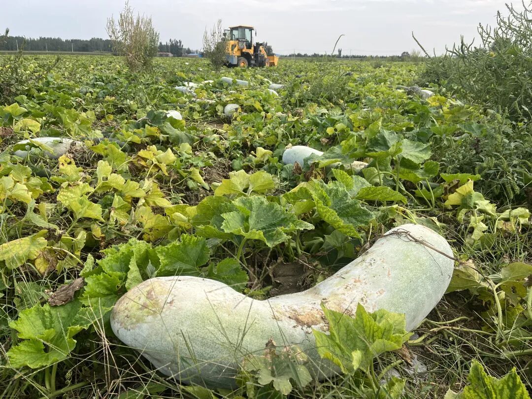 李鹏看着田野里一排排黑得发亮的冬瓜,整齐地码在田垄上,黝黑的脸上笑开了花。他介绍,当初敲定种植品种时,他和村“两委”反复琢磨,最终选择种植“黑金刚”品种,黑皮冬瓜不光成本低、产量高,还抗病性强、耐储运,收下来的冬瓜色泽鲜美,不管是鲜卖还是深加工都合适,市场表现旺盛。“一年的付出没白费,现在喜获丰收,地里的冬瓜单个能长到五六十斤,亩产能稳稳达到2万斤,每天光是采收量就有90吨,产量相当可观,价格也不错,冬瓜种植培育,将会成为我们壮大村集体经济的‘拳头项目’。”李鹏满脸的笑容。