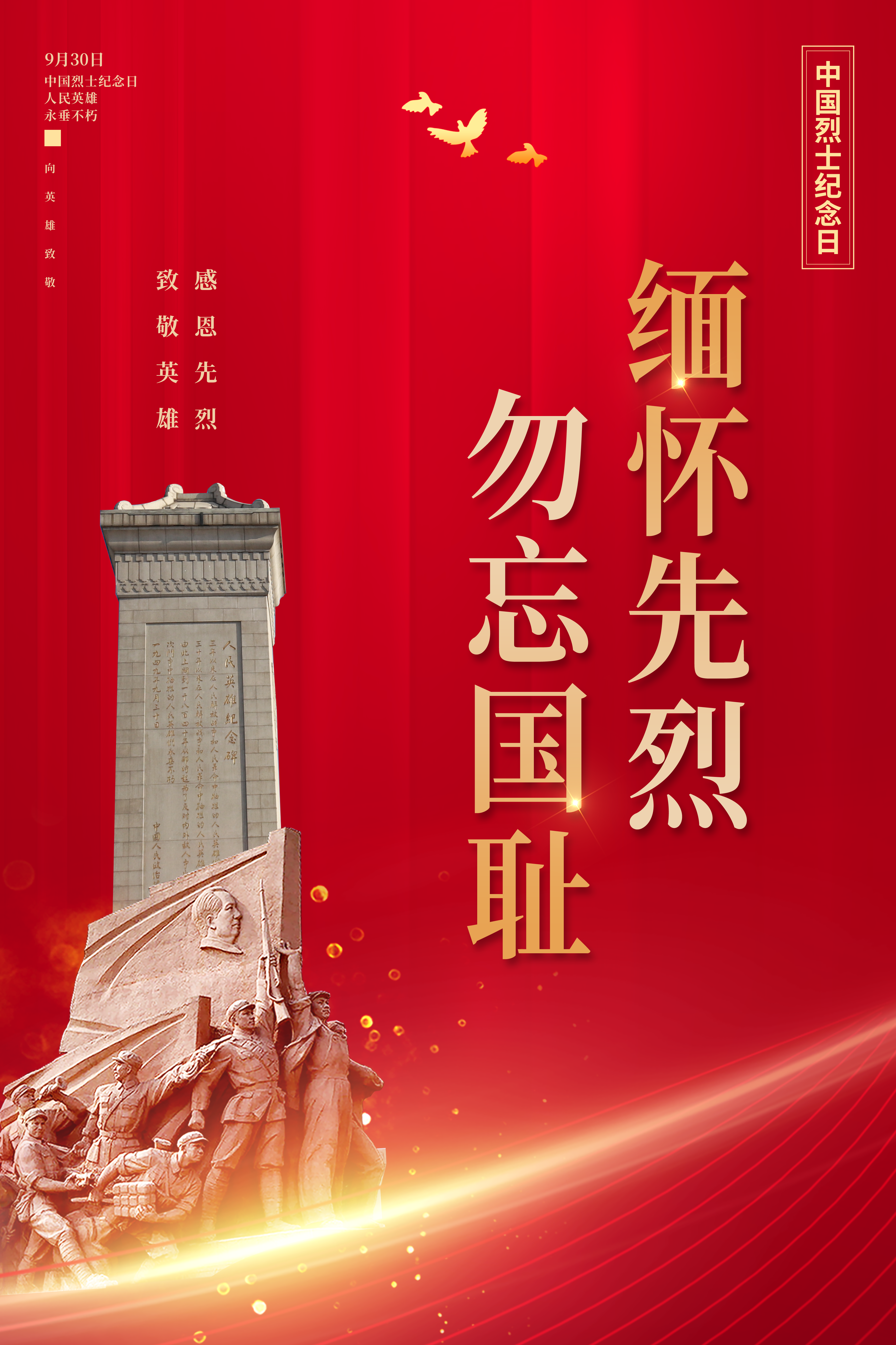 今天,9月30日,是中国烈士纪念日。无数英烈以热血筑起丰碑,用生命换来山河无恙。这是一个缅怀先烈功绩、弘扬烈士精神、激发中华民族伟大复兴梦想的特殊日子。在这个庄严的日子里,我们再次与那些镌刻在民族脊梁上的名字深情对话。无论是在战争年代为家国存亡奋不顾身,还是在和平时期为戍边卫国挺身而出,无数先烈用生命诠释了“初心”的分量,用热血铸就了“信仰”的丰碑。