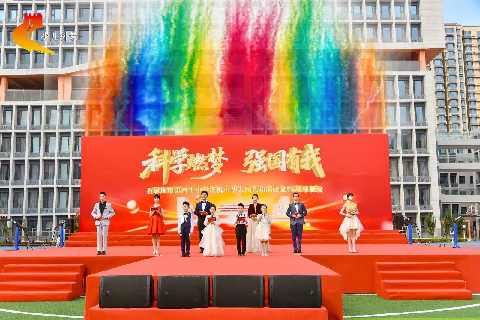 彩墨书成七十六,少年同谱中华赋。为庆祝中华人民共和国成立76周年,9月30日下午2点30分,石家庄市第四十中学举行“科学燃梦•强国有我”展演活动,以一场精彩纷呈的科学文化盛宴,展现新时代师生的赤子情怀与责任担当。