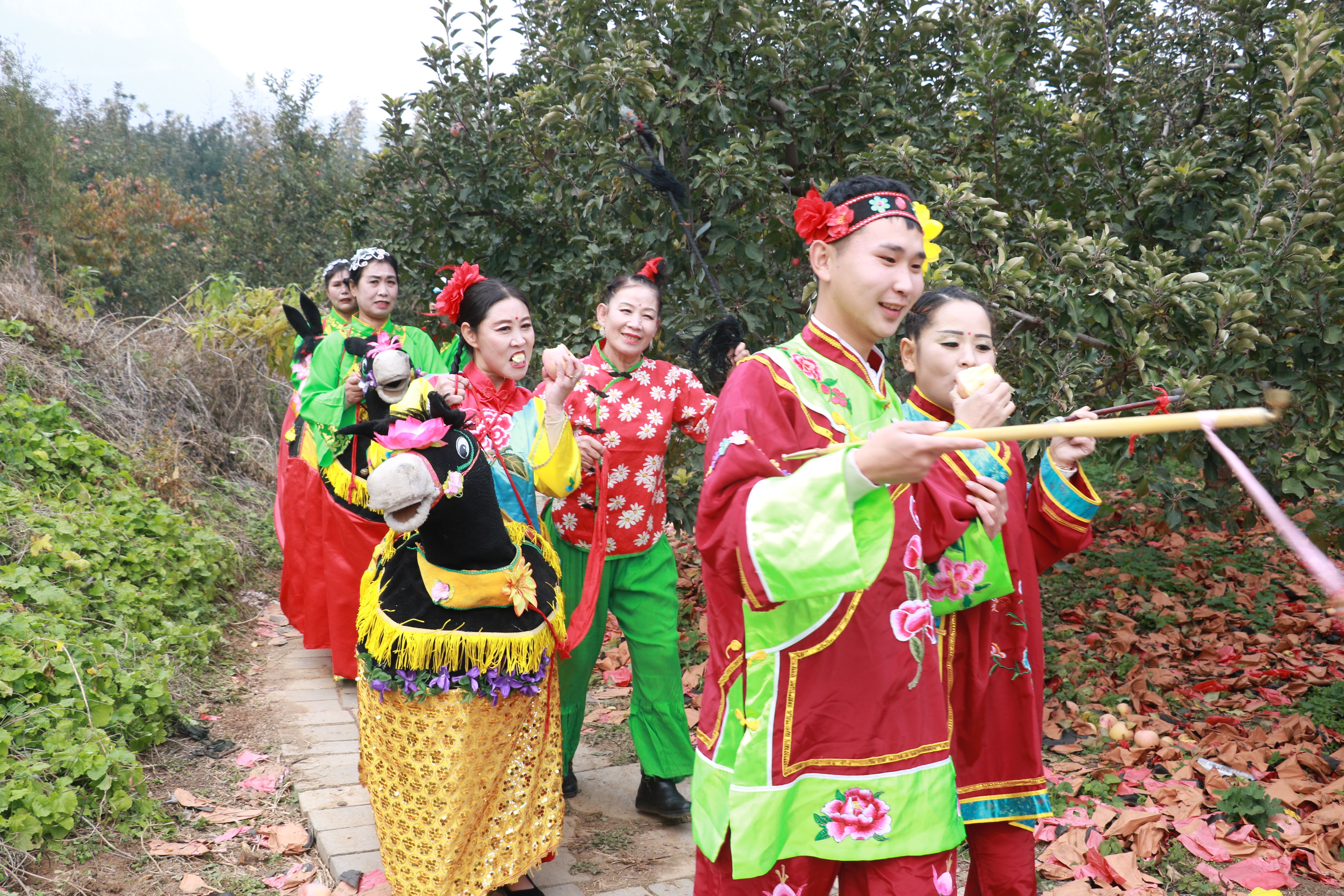活动主会场洛阳村珍果庄园内,安排了特色的文艺表演,井陉拉花、跑驴、旱船等等,诙谐有趣的节目,让人们在采摘的同时也感受到当地的特色民俗,来一场视觉盛宴。尤其是跑驴的队伍穿梭在果园之中,让现场充满了喜庆的气氛。