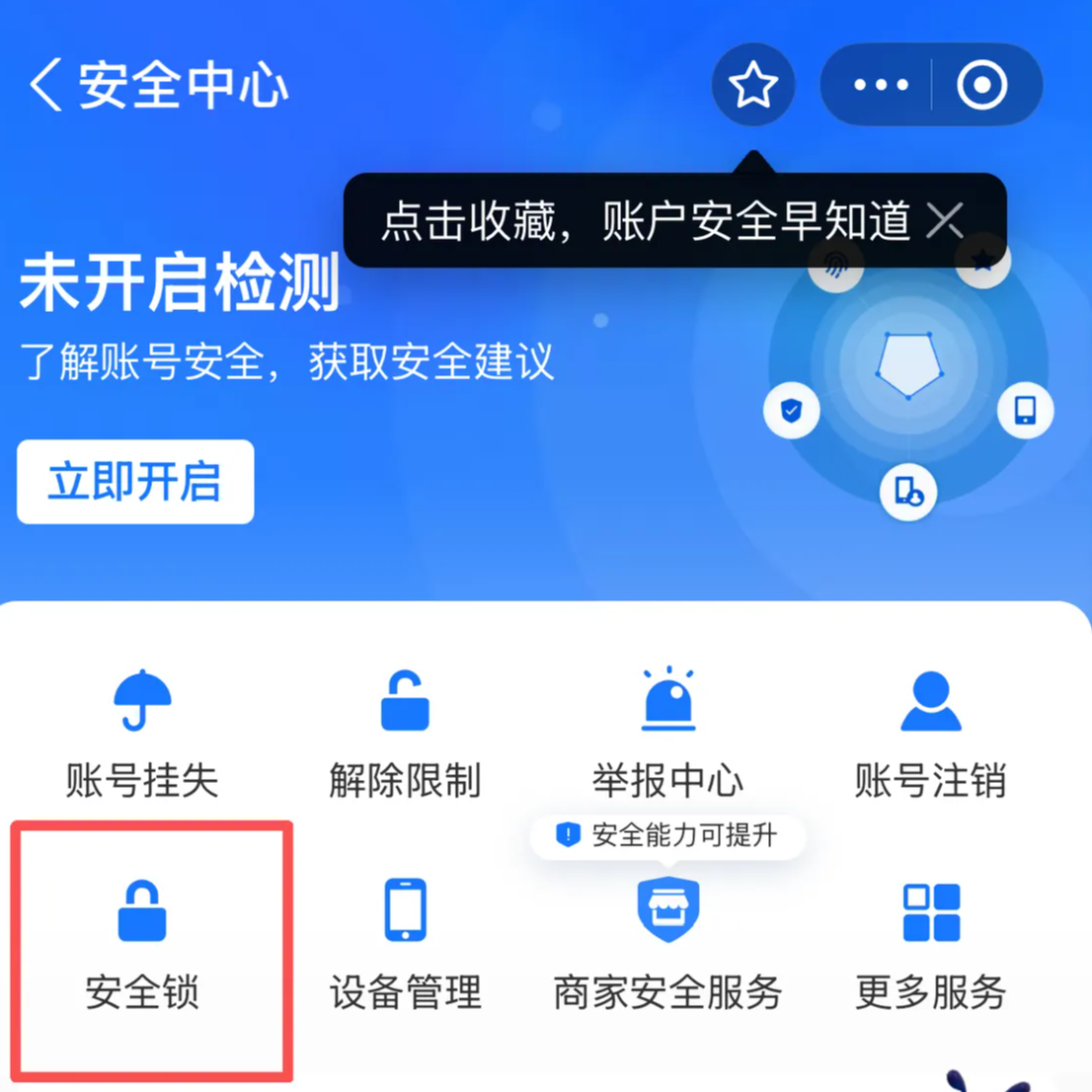 11月9日下午,记者用测试手机进入支付宝“用户保护中心—安全锁”界面,依次打开: