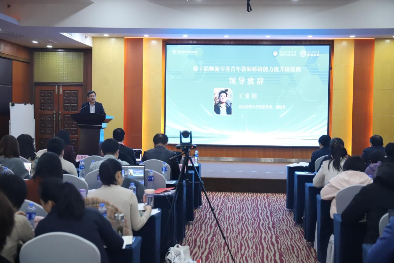 王重润介绍了河北经贸大学及管信学院的发展情况,表示希望以此次活动为契机,深化人才强校战略、推进学科高质量发展。对参与此次研修活动的各位领导、专家和青年教师表示热烈欢迎,向长期以来支持和关心河北经贸大学发展的教育部物流教指委、中国物流学会、中国物流采购与联合会以及兄弟院校表示衷心感谢。
