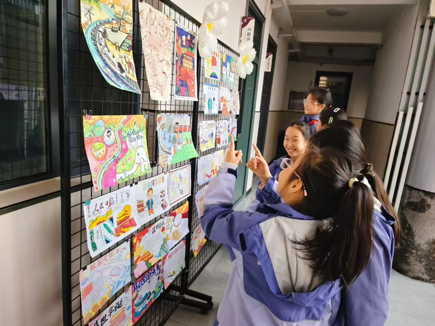 本次展览以“看发展” 为核心,面向全体学生征集绘画作品。同学们以童真视角捕捉身边变化,用绚丽色彩、灵动线条勾勒校园新貌与城市发展,每一幅作品都凝聚着对生活的热爱与对美好未来的憧憬。学校精心布置展示区域,将优秀作品在校园中进行展览,让艺术气息浸润校园每个角落。