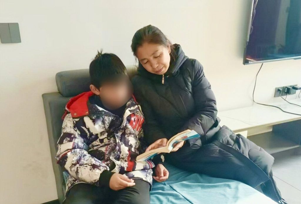 11月20日,“爱心妈妈”成宝英陪辰辰读书。受访者供图