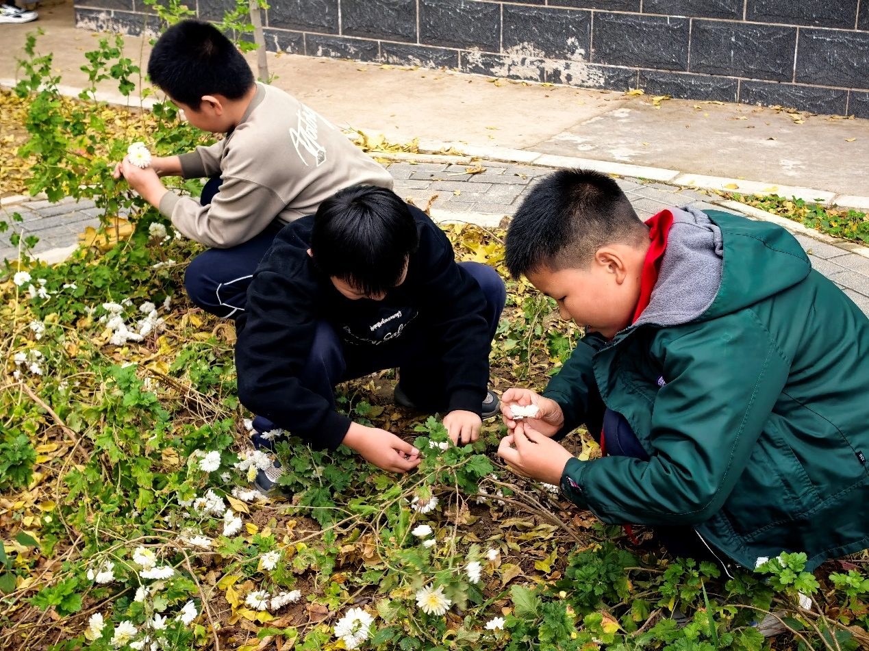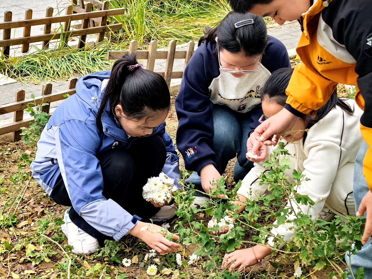 两年前,这里还是一片普通的绿地,直到新石小学的同学们播下了第一颗中草药的种子。今年春末,孩子们又补种了一片小菊花,为这片园地增添了新的生机。如今,站在这里,看着满园收获的喜悦,时光仿佛在悄然诉说着成长的秘密。