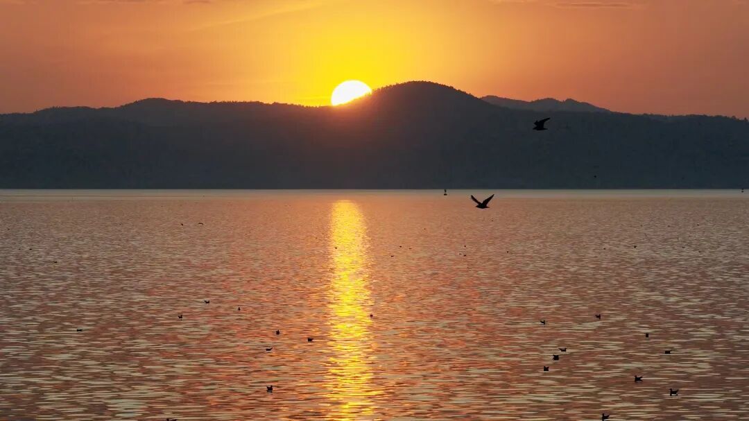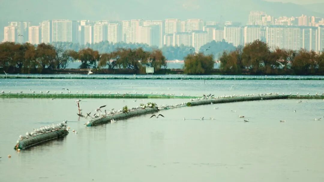 2025年11月,蓝天下的滇池碧波荡漾,昆明人的老朋友、来自西伯利亚的红嘴鸥已如约到来,啄食、盘旋……与远山云影相融,形成一幅人与自然和谐共生的绝美画卷。