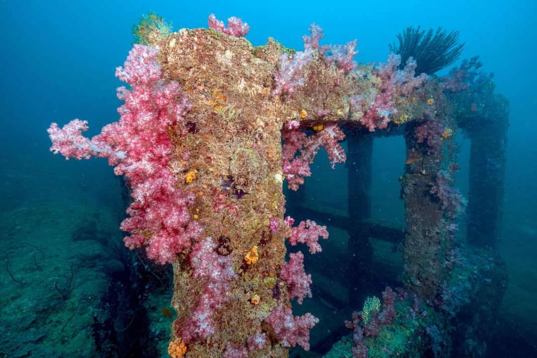 转机始于2010年。蜈支洲岛开启了国家级海洋牧场的建设,王丰国和同事们扎进海底,学习珊瑚培育技术,开始在海底“盖房子”——投放人工鱼礁、沉船,为海洋生物打造一个能繁衍生息的“社区”。鱼礁的孔洞、沉船的骨架、水泥的表面,每一处设计,都在等待珊瑚幼虫的附着。
