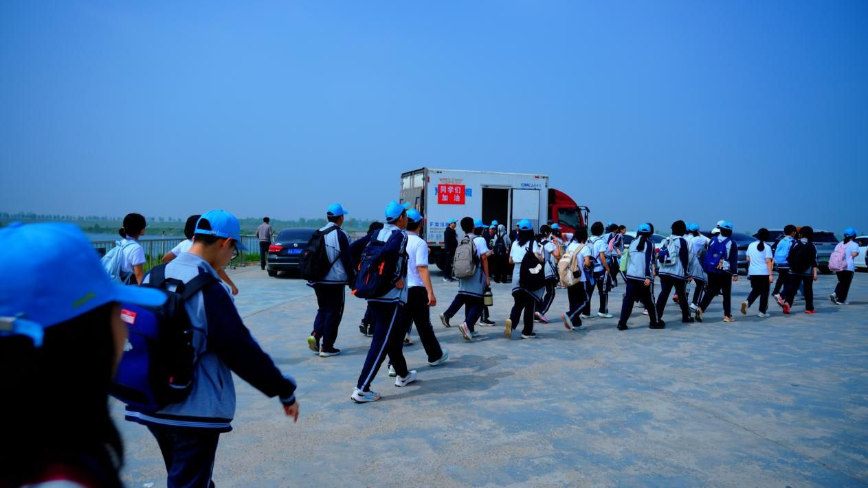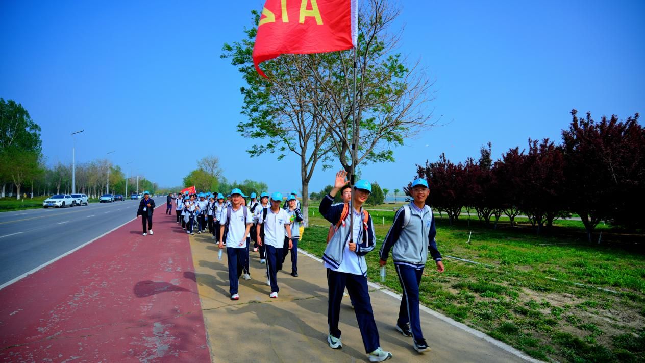春日滹沱河畔草木萌新、风景如画,远足队伍沿着河岸有序前行,鲜艳的校旗、班旗、团旗、队旗迎风飘扬,嘹亮的口号声回荡在河畔。行进途中,尽管路程漫长、体力渐耗,但同学们始终斗志昂扬,大家互帮互助、携手并进,用坚定的脚步克服疲惫,以乐观的心态直面挑战,充分展现出团结奋进、永不言弃的青春风貌。