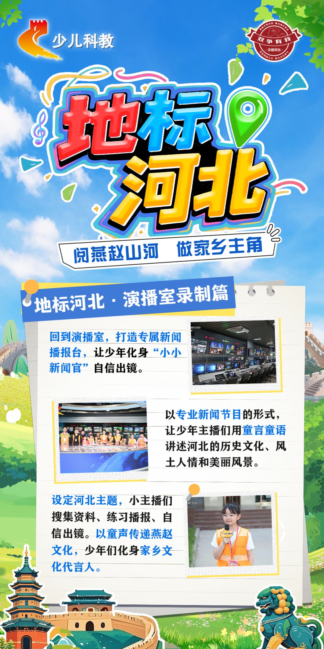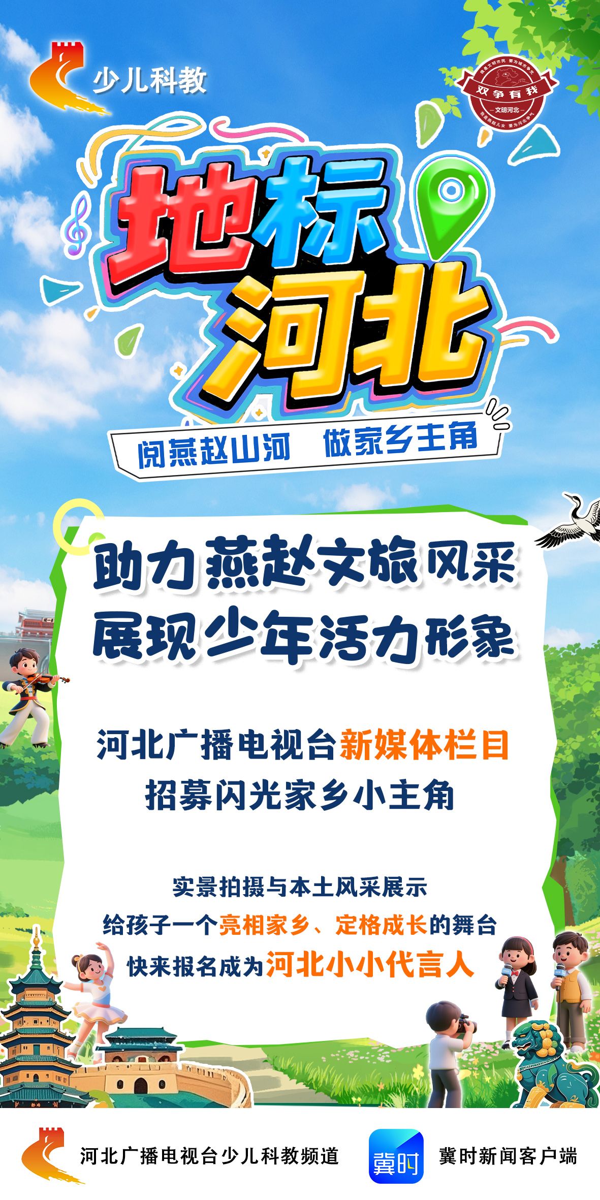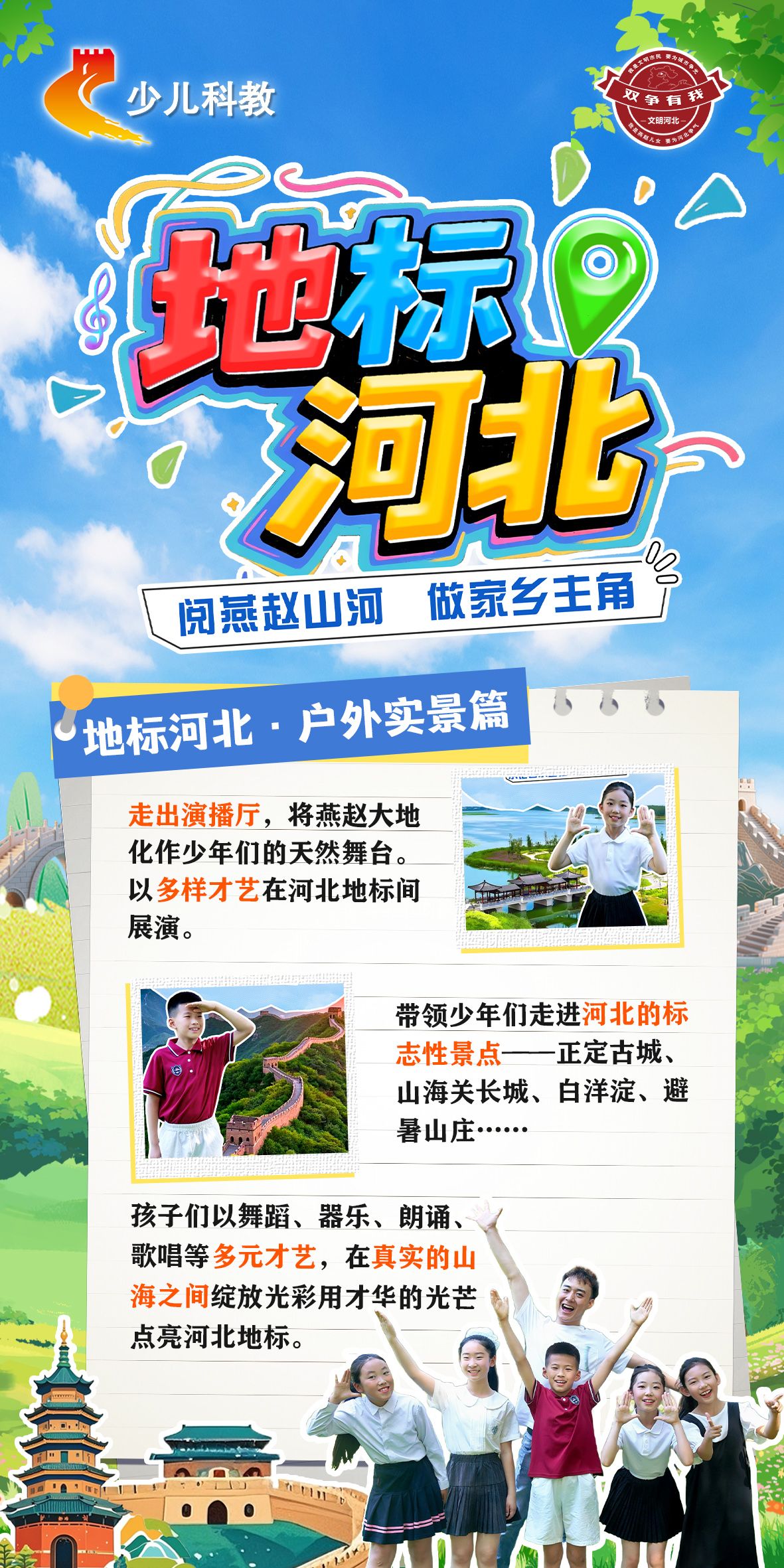 《地标河北》是由河北少儿春晚团队为优秀合作伙伴量身打造,以“文旅+才艺”为内核,带领全省少年儿童走进河北经典文旅地标,在真实场景中,绽放阳光、自信与爱家乡的模样。