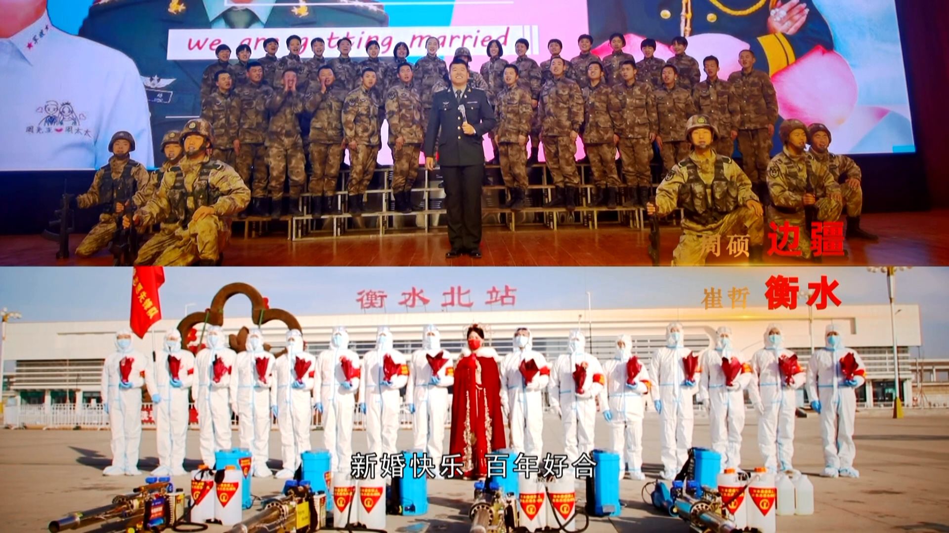 2021年1月30日,全网见证了一场特殊的“云”婚礼。新郎周硕驻守边疆,无法返乡;新娘崔哲,作为一名退伍女兵,投身抗疫前线,不畏雨雪风霜。他们“云”上相见,共同步入婚姻殿堂,他们用行动诠释了军人的使命和担当。