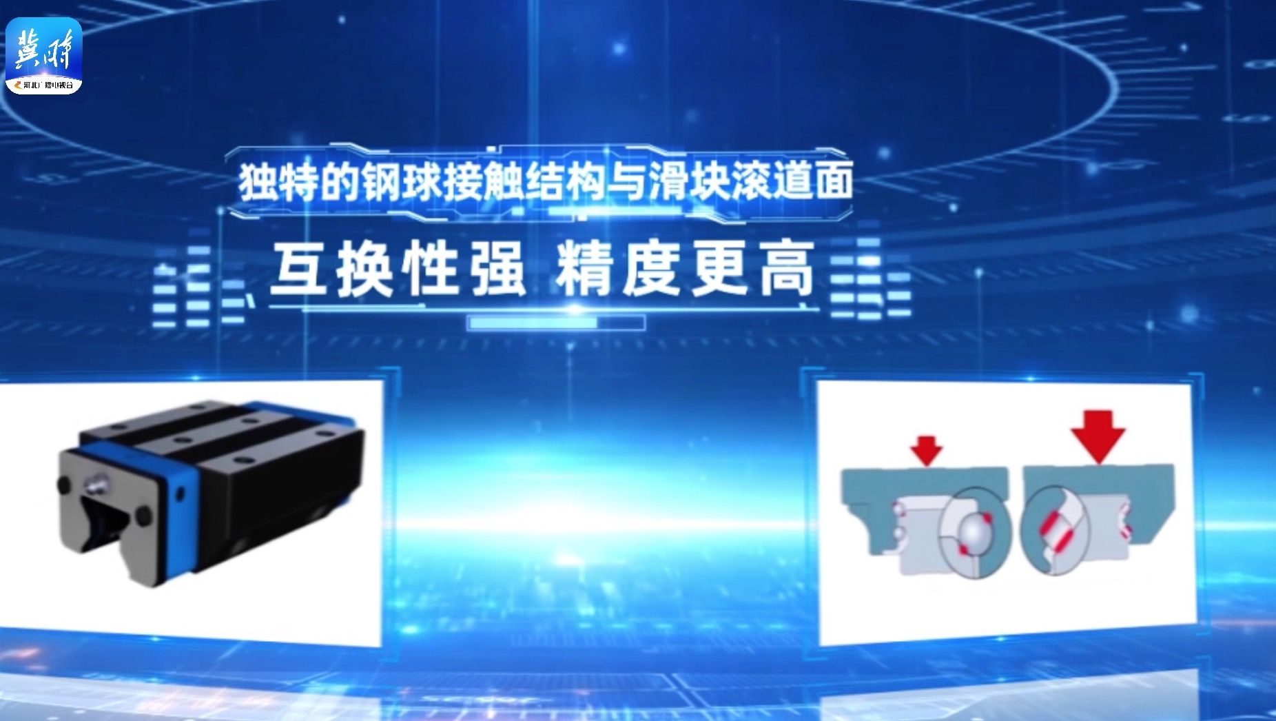 独特的钢球接触结构与滑块滚道面