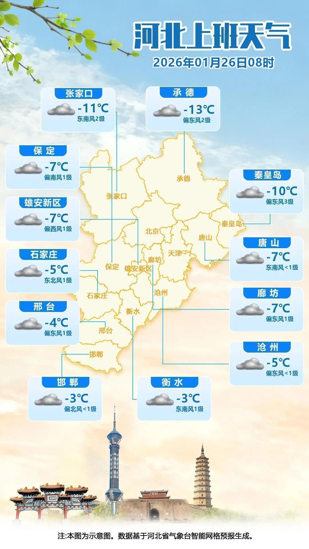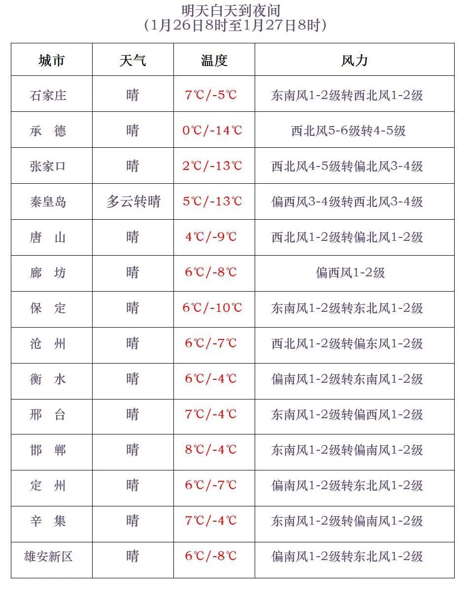 明天白天,张家口北部、承德北部、唐山、秦皇岛多云转晴,其他地区晴间多云。