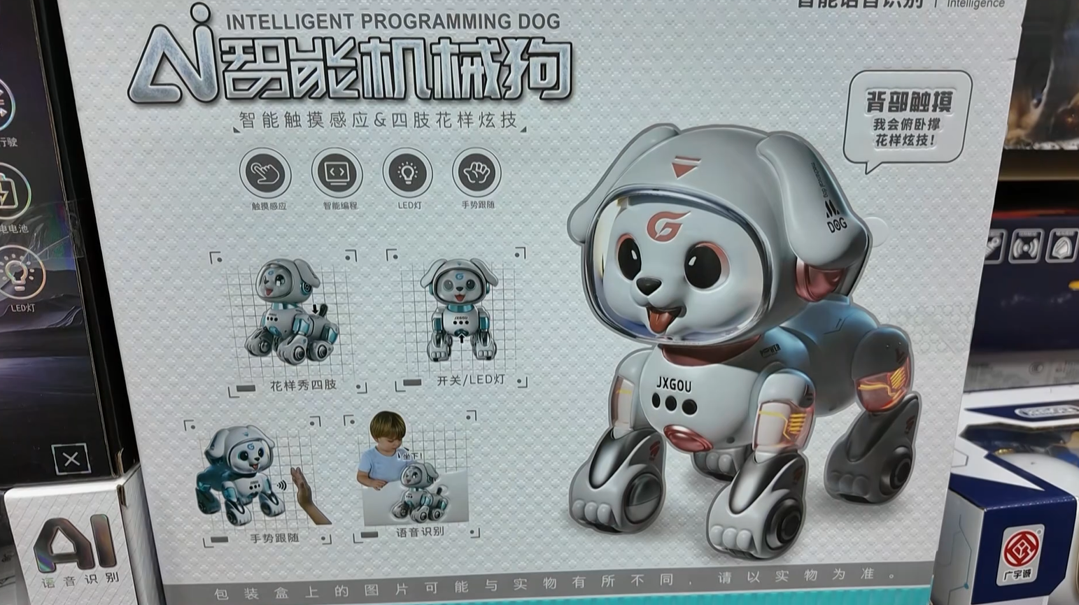 玩具店商家:主要面向就是小学生 AI的,它可以有编程,然后他可以有很多动作,现在做的也都比较智能,也都比较仿真,可以AI对话,这个卖的也比较好,因为现在AI是一个大趋势,也会省家长的事情,也会开发孩子的动脑能力。