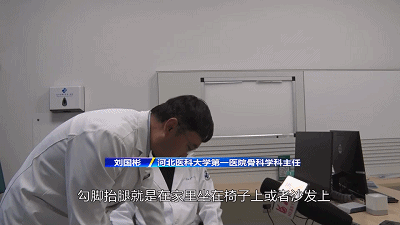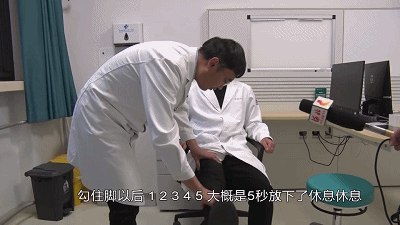 在勾脚的过程当中不增加膝关节里面的压力,大腿的肌肉是绷紧的,也就起到了锻炼大腿前方股四头肌的作用,它的锻炼同样也要遵循循序渐进,量力而行的原则,就是锻炼的腿微微发酸了,就把它停下来。