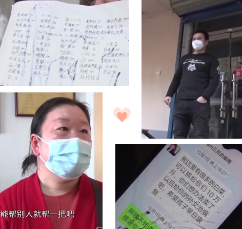 李慧芳说,她在石家庄遇到了很多好心人,摆摊用的三轮车也是附近商贩免费借给她的。而她的记事本上,记录着她能记下的所有捐款人的名字,其中,一位石家庄元氏县的菜农让李慧芳印象深刻,她要一下捐给老人10万斤白菜。