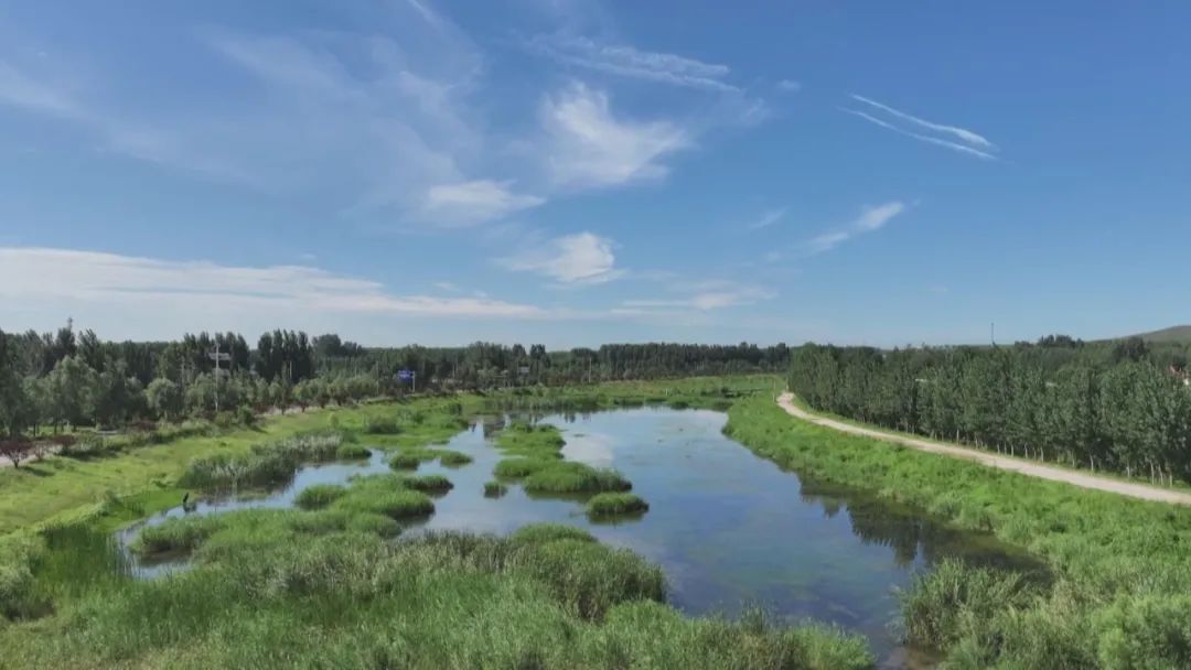 东寺渔村景区附近还有一处可以打卡拍照的好地方——颍水湿地,颍水湿地宛如一幅流动的生态画卷徐徐展开,这片孔雀湖下游绵延约10公里的水域,以其清丽的景致,成为行唐人引以为傲的“家门口的诗意”。