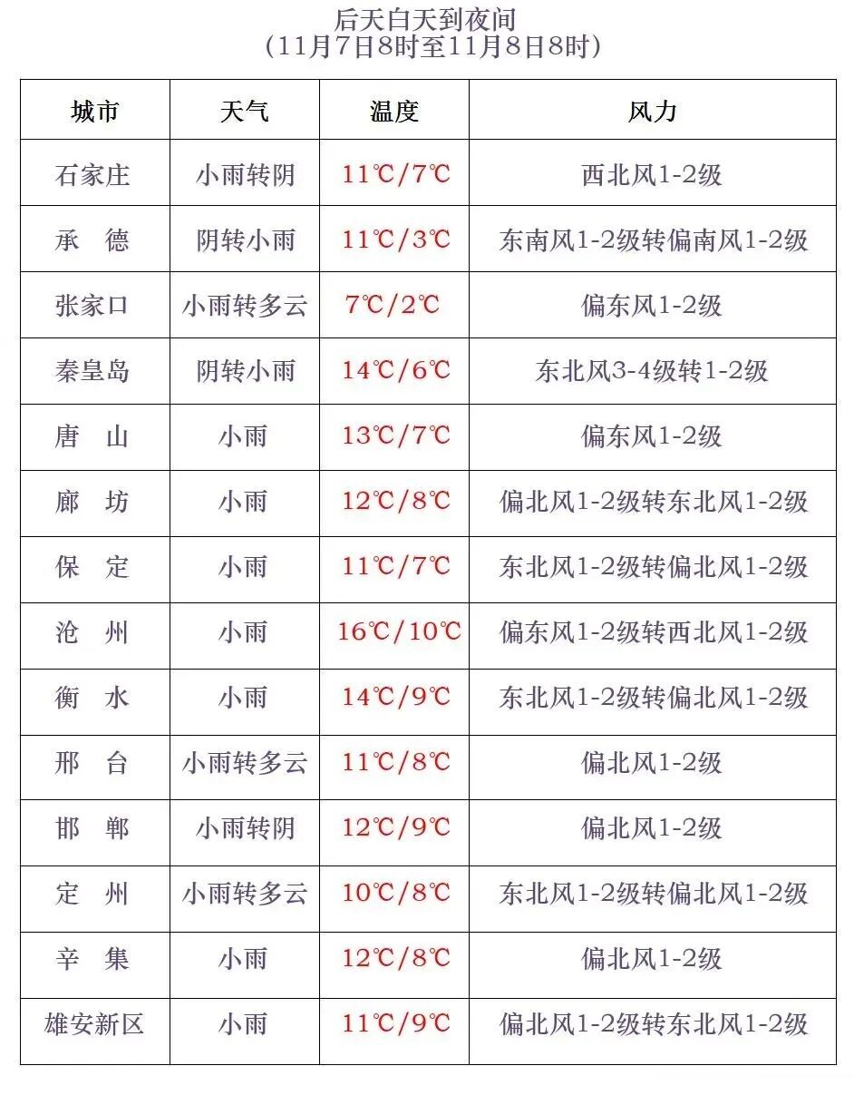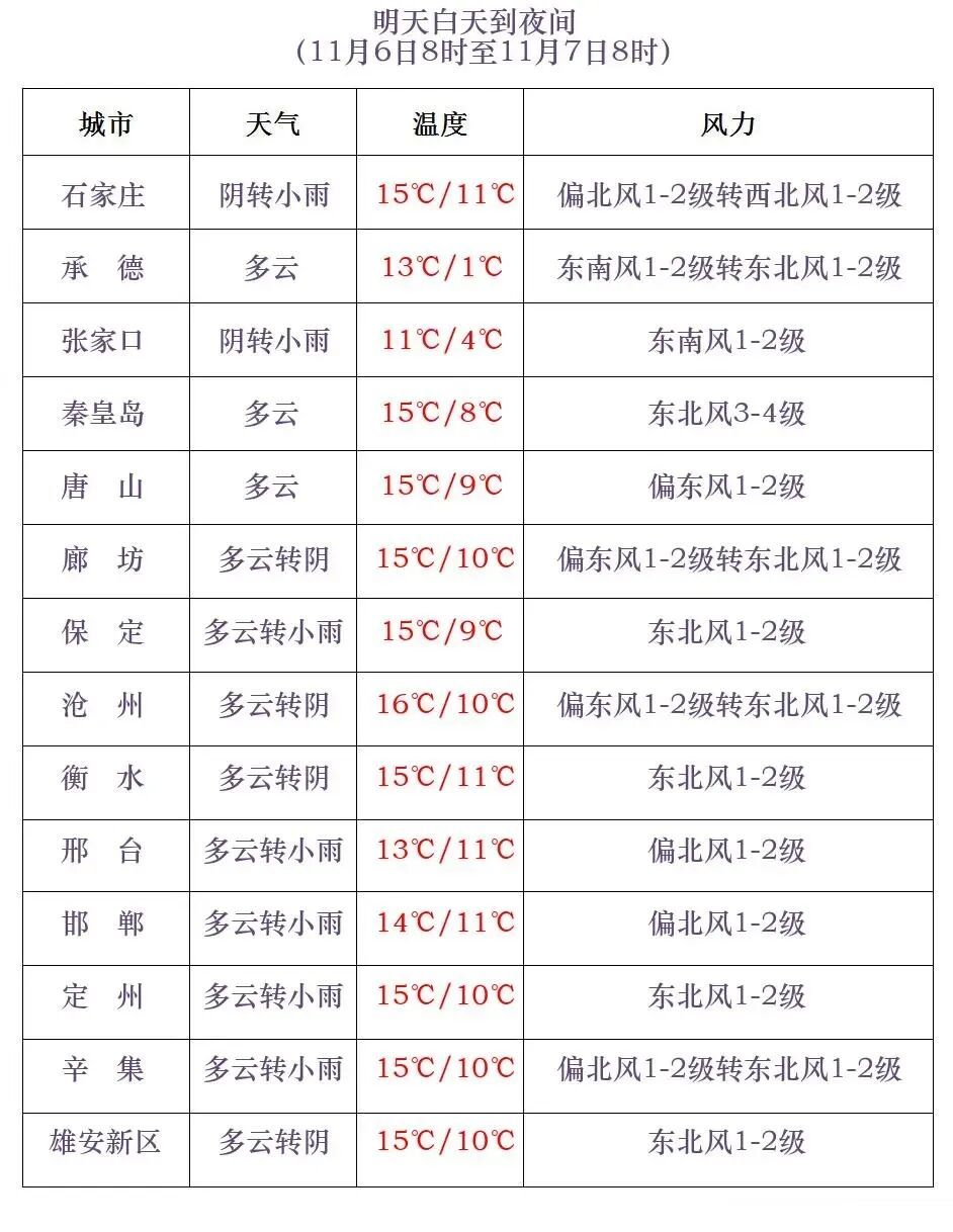 明天夜间到7日,承德东部、秦皇岛中东部多云转阴,张家口北部、承德北部阴有雨夹雪或小雪,其他地区阴有小雨,其中张家口南部、保定西部、石家庄西部局地有中雨。