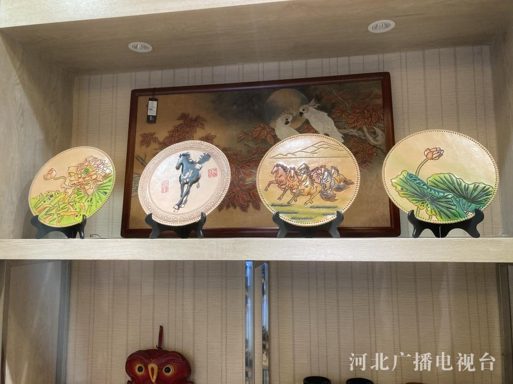 如今在辛集,皮革制品早已不是单纯的皮衣、貂皮大衣了。参观完博物馆,来到一楼名花文创旗舰店里,令人目不暇接的是各种各样的皮革文创产品,华丽的皮质立体画、精巧的皮革首饰盒、灵动的皮质卡通手办、毛茸茸的家居装饰品......让人不得不“爱不释手、只好带走”了。