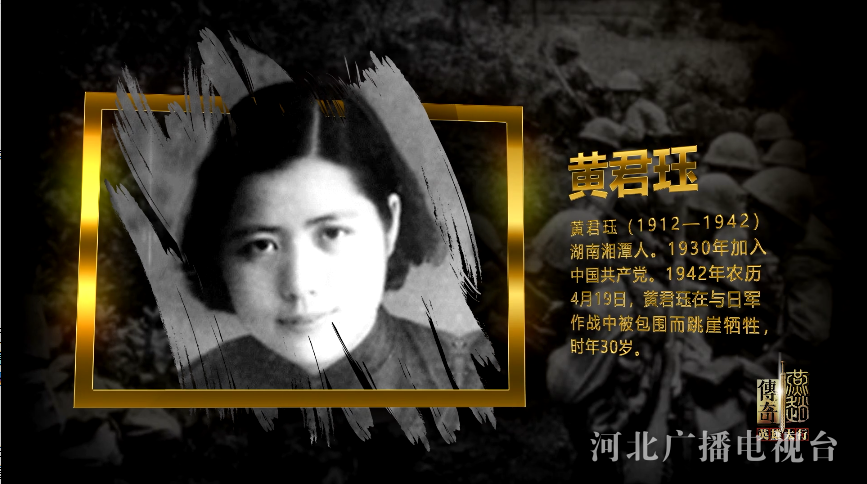 黄君珏,湖南湘潭人,15岁时参加革命工作。《新华日报》的一位新闻工作者。1942年5月,日军对太行根据地发动了残酷的大“扫荡”,华北新华社与华北新华书店随部队转移,在现在的河北与山西交界的十字岭,与敌人发生激战,陷入敌人重重包围之中。