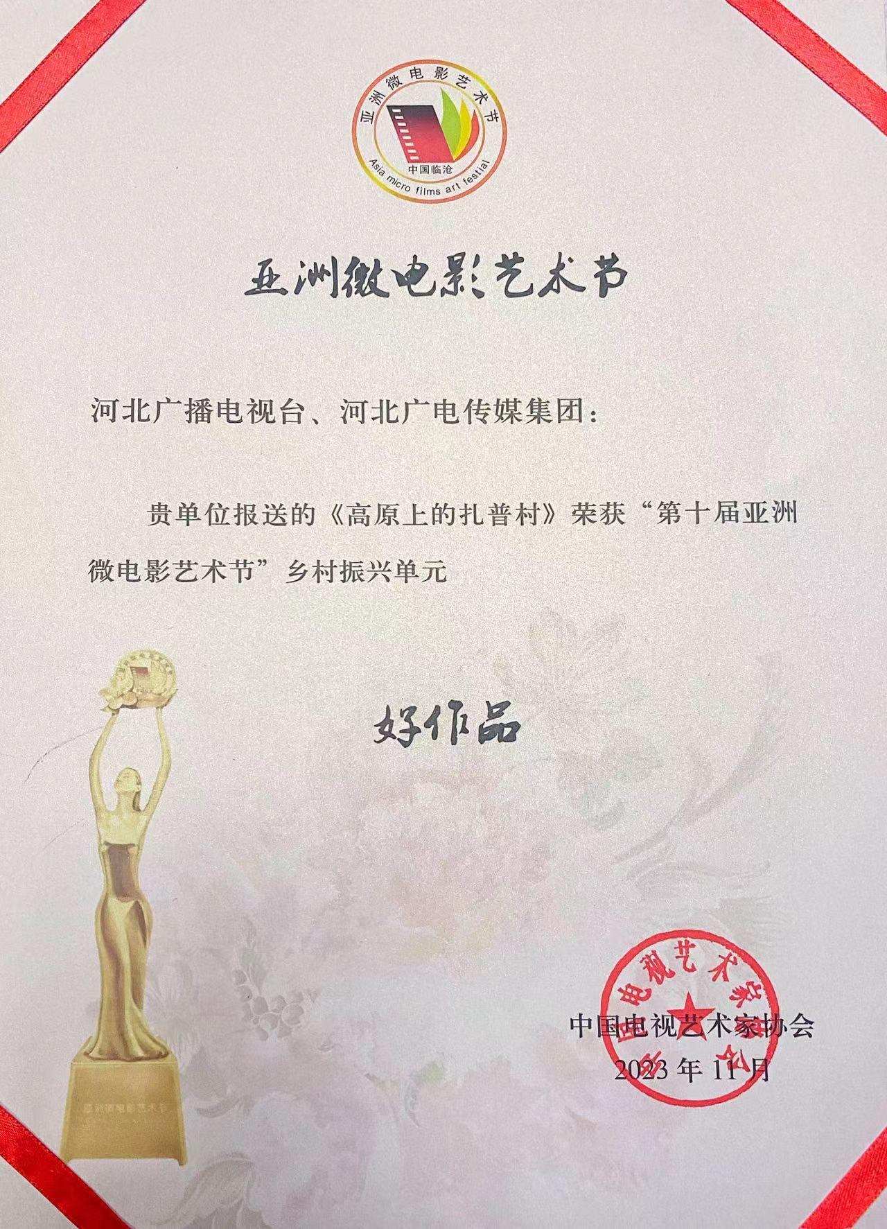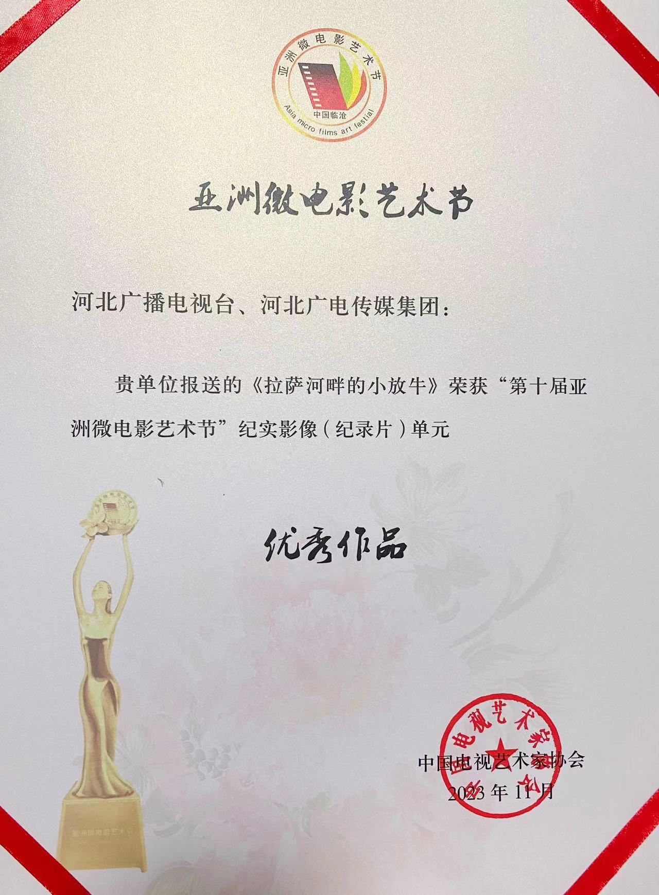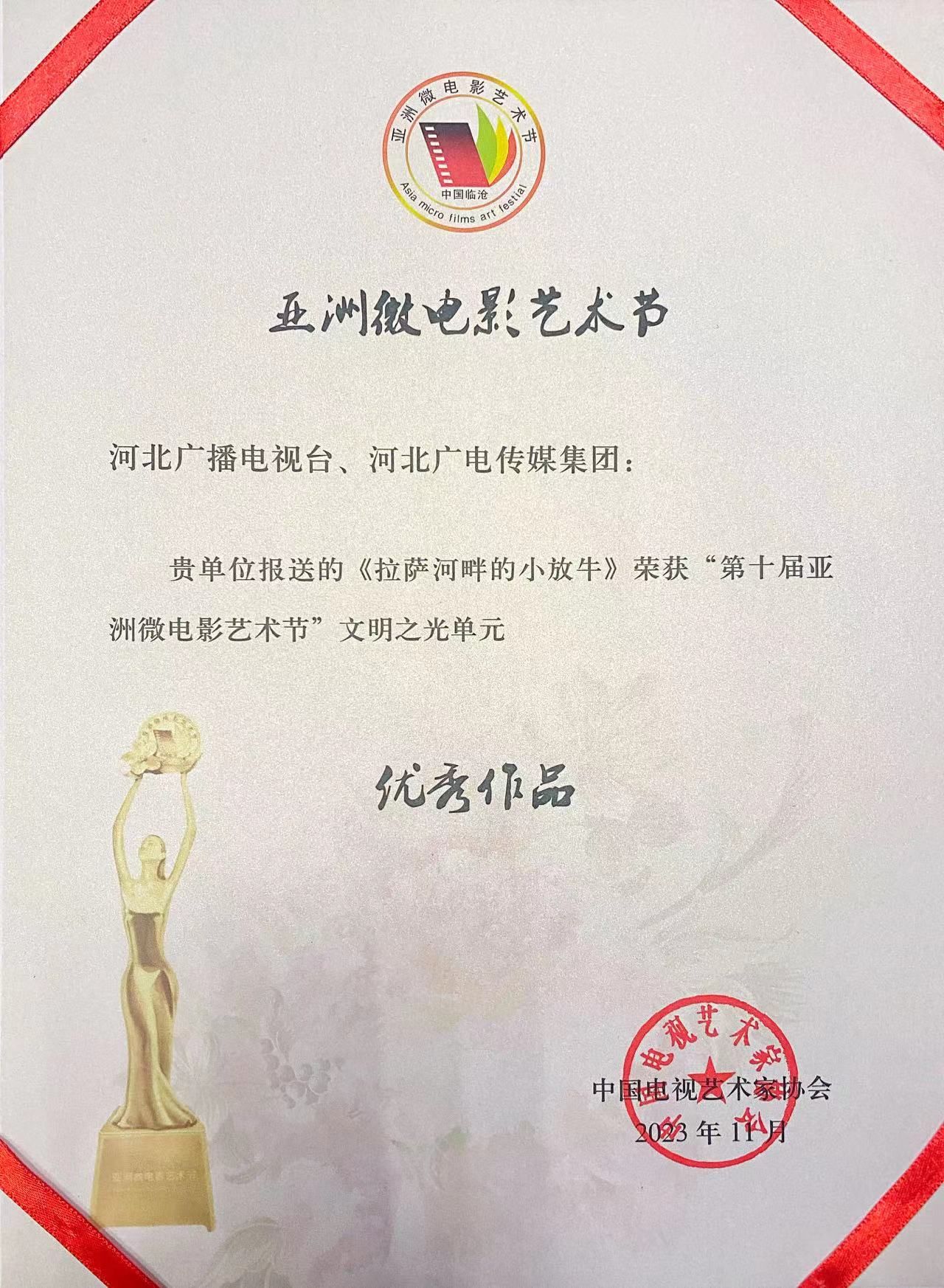 第十届亚洲微电影艺术节由中国电视艺术家协会、中央新影集团等单位主办,共征集到2874部作品。影视剧频道报送的《拉萨河畔的小放牛》、《高原上的扎普村》喜获四项奖项。