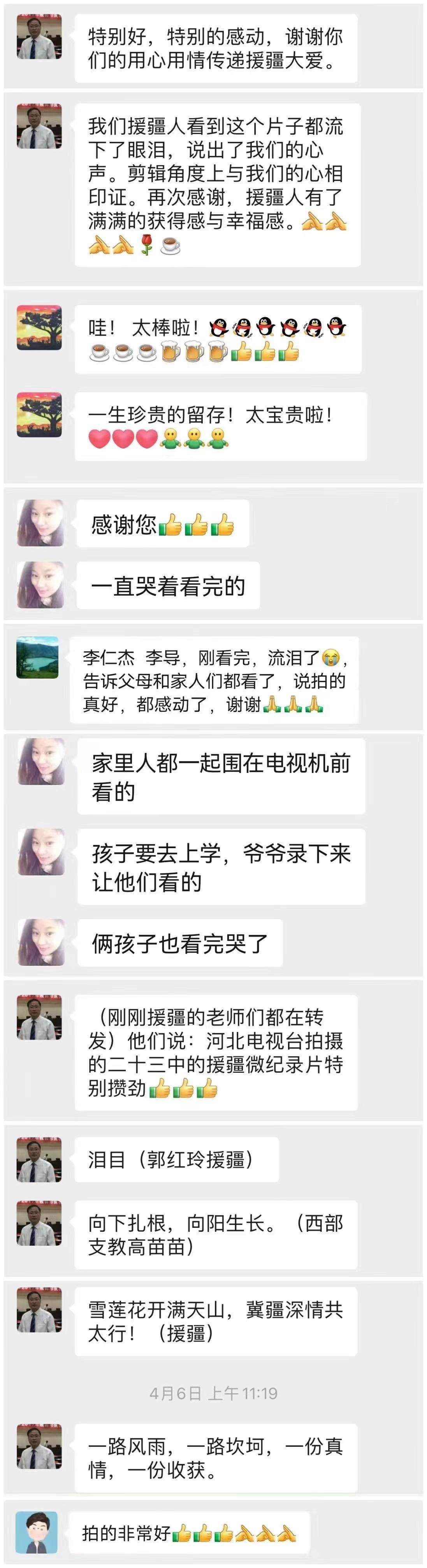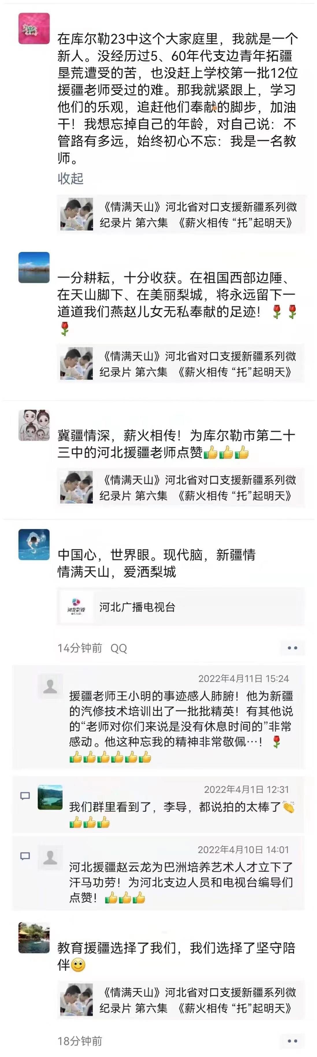 一条条回信,一条条评论,几乎每天都在微信、朋友圈刷屏,河北援疆好故事、好声音通过此次微纪录片的展播不断扩散、传播。