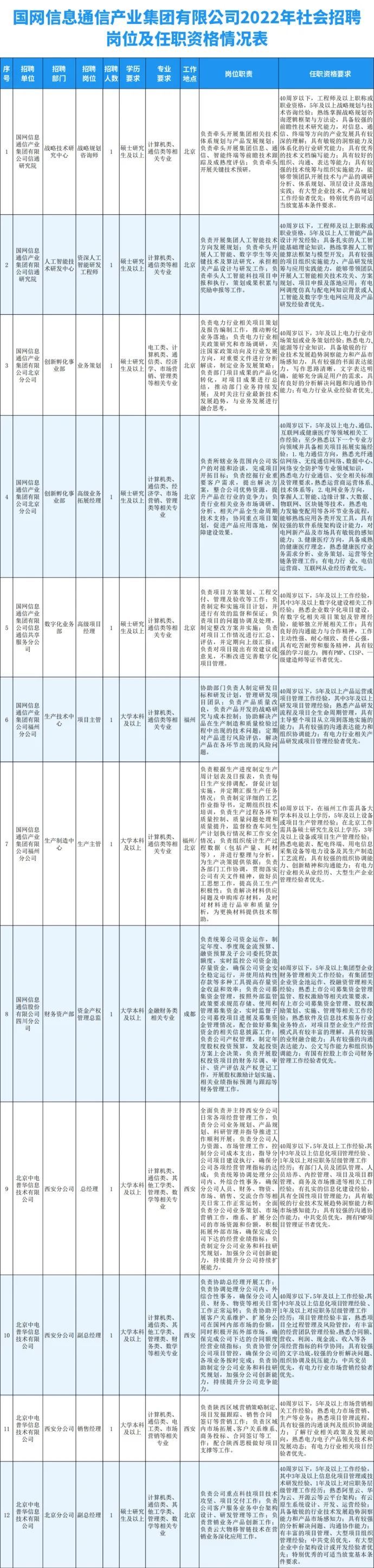1.国网信息通信产业集团有限公司2022年社会招聘岗位及任职资格情况表
