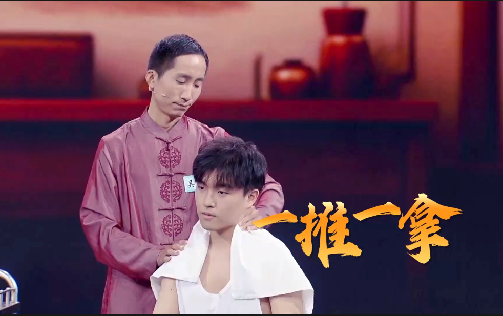 一、筋骨推拿。本环节分为推拿功法和推拿手法两项内容,总分40分。推拿功法,选手3人一组,根据大屏显示的功法名称,做出相应的动作,每组3个功法动作,共10分;推拿手法,选手根据大屏显示的身体部位,在提供的推拿手法中进行3种推拿实操,并在3分钟内完成操作。评委根据选手的操作表现进行打分,满分30分。