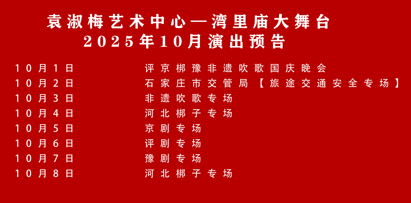 戏曲盛宴连唱 8 天:袁淑梅评剧艺术中心在同乐街口评剧亭小舞台开唱!10 月 1 日至 8 日每晚 17:00-18:30,京、评、豫、梆四大剧种轮番上演,经典选段一次听过瘾,戏迷朋友们千万别错过!