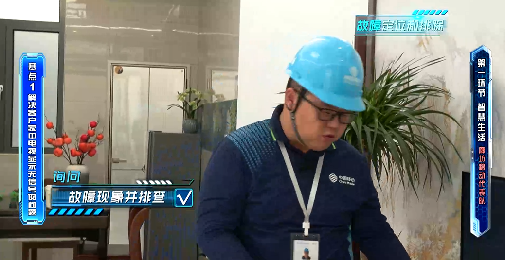 廊坊移动代表队将接到客户 “电视无信号” 的求助,需精准排查信号源设置、线路连接等问题,快速恢复电视正常播放。他们能高质量解决问题吗?